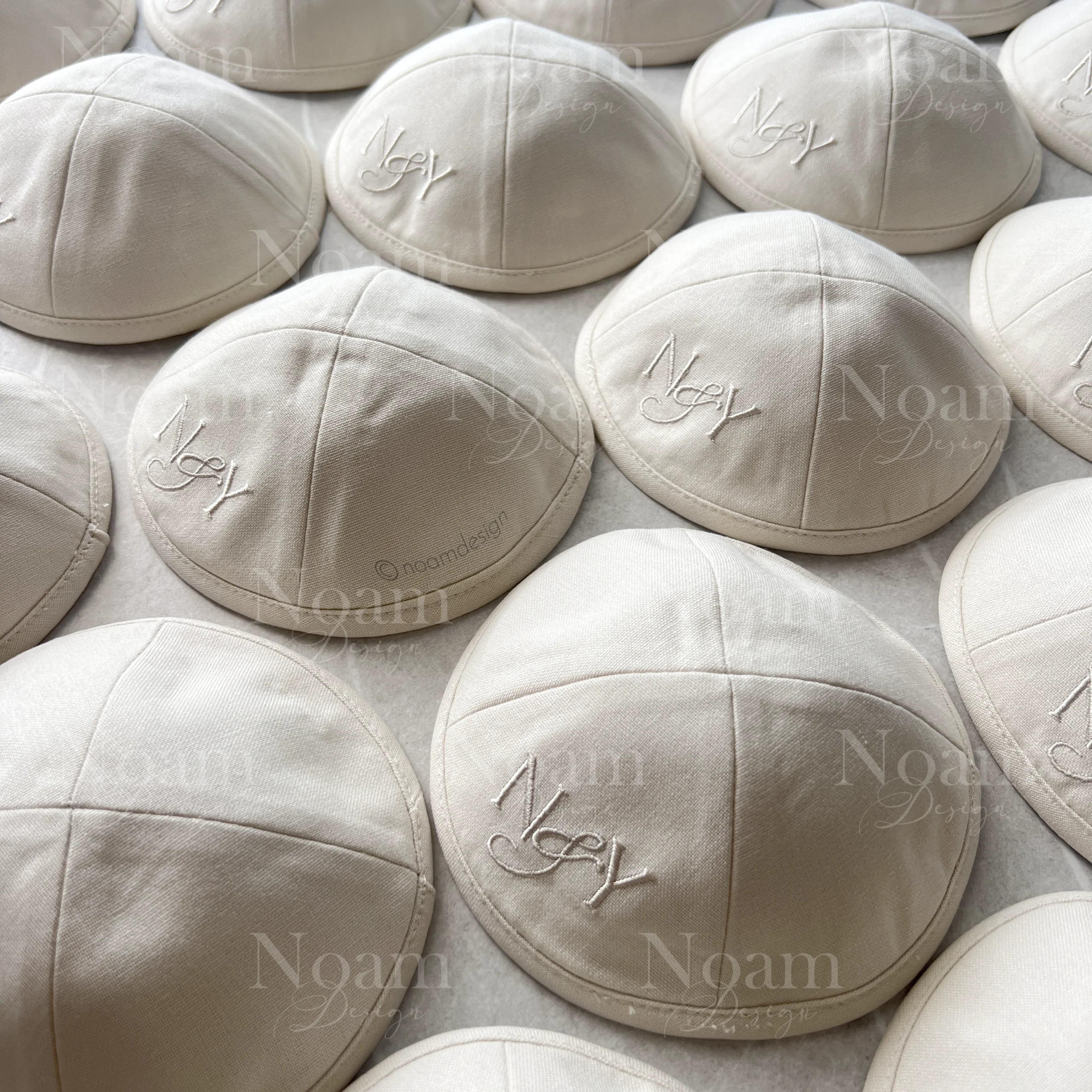כיפות פשתן בתפירה אישית עם רקמה