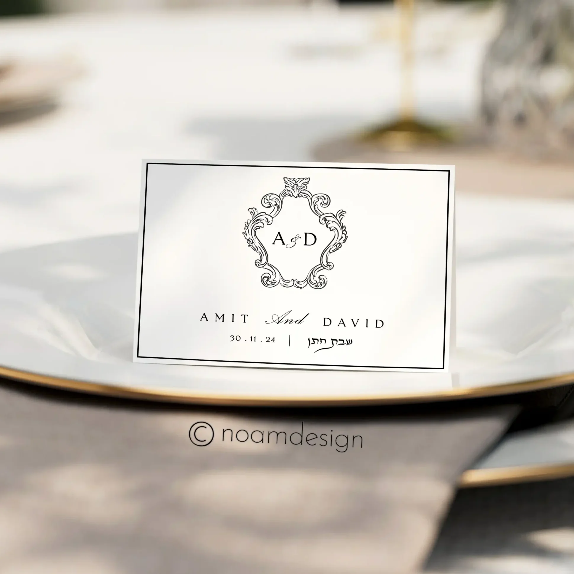 פתק בעיצוב אישי, מודפס דו-צדדית וכולל פס קיפול מקצועי, מונח בצורה מדויקת על גבי הצלחת או המפית ומשלים את העיצוב הכללי של האירוע.