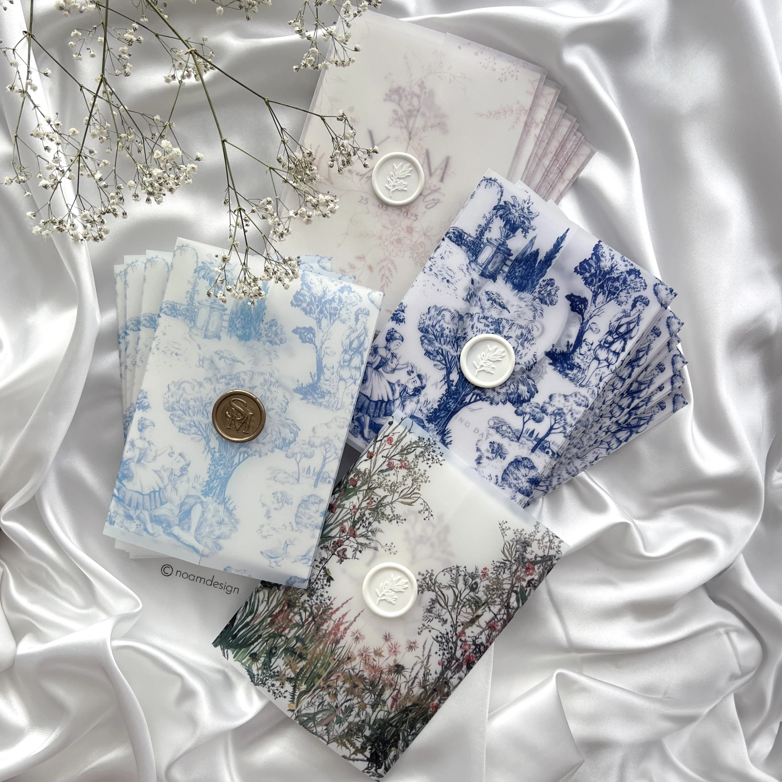 הזמנה עם מעטפה מודפסת וחותמת שעווה