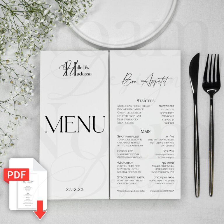 The menu is much more than a list of dishes – it’s an integral part of your event’s perfect branding. Each design in our collection seamlessly matches your invitation’s style and adds an elegant touch to your event tables. Your guests can browse and choose their preferred dishes in advance, creating a smooth and efficient dining experience without unnecessary delays.