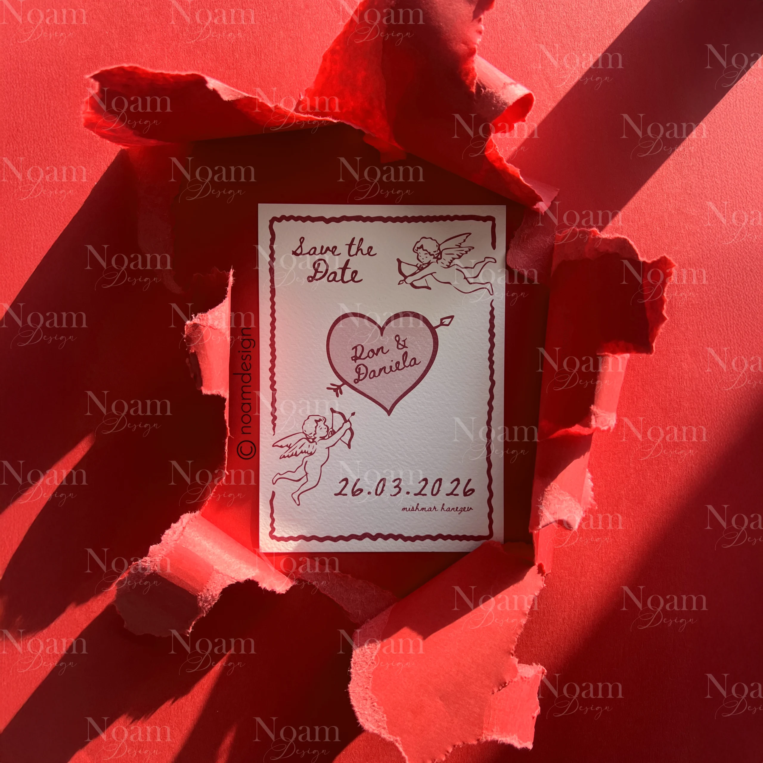 In this video, a top sheet of paper in the color of your choice is torn open, revealing the page beneath with your wedding date, a small moment of surprise that feels truly special.